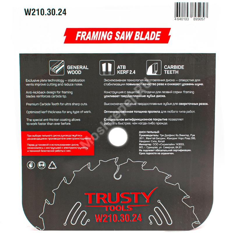 Пильный диск Trusty-Tools Framing по дереву 210х30 24T